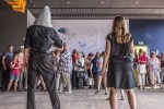 FEET-Anwärter*innen durchlaufen am Tag des Offenen Tors eine Kunstmaschine, die dem gemeinsamen ästhetischen Handeln eine erste Form gibt. Durch den Bau einer eigenen Orgelpfeife für die mobile demokratische Orgel – das Erlernen und kollektive Tanzen des, für öffentliche Interventionen entwickelten, Heringstanzes (der Hering ist seit dem Mittelalter Symbol der Stadt Frankfurt) – und eine Begegnung mit dem Kalten Fisch in einer „one to one performance“ werden die Besucher*innen zu Mitgliedern des neuen Folkstheater-Ensembles FEET.